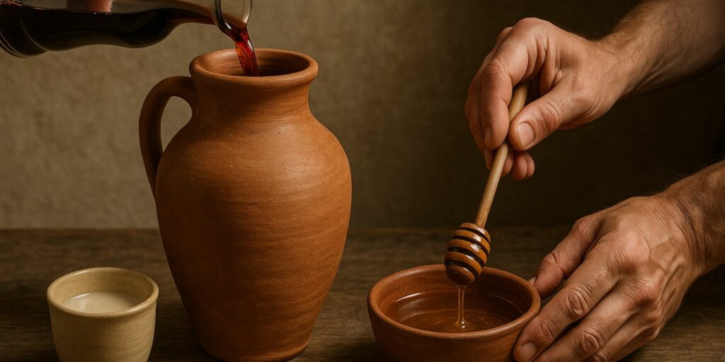 Contrairement au mulsum, l’hydromel ne contenait pas de vin, ce qui le rendait plus accessible dans certaines régions où la vigne poussait moins bien. Il était parfois enrichi de plantes aromatiques ou d’épices pour en varier le goût. Les Romains l’appréciaient notamment dans les provinces du nord, où la tradition de l’hydromel se prolongea bien après la chute de l’Empire. C’était une boisson à la fois rustique et noble selon son mode de fabrication.