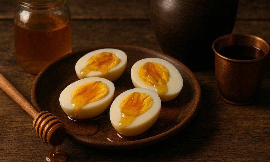 Dans la cuisine romaine, le sucré et le salé n’étaient jamais séparés. On aimait marier le miel aux viandes, aux poissons et même aux légumes. Les œufs durs au miel représentaient un amuse-bouche apprécié en début de repas, censé éveiller les papilles avant les plats principaux.