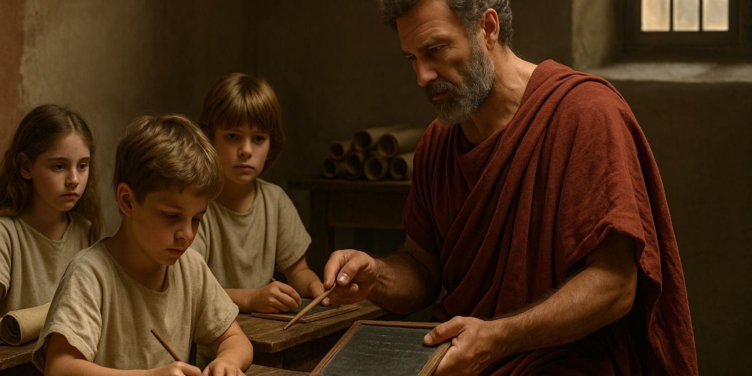 Les écoles romaines : comment les enfants apprenaient-ils à lire et à écrire ?À quoi ressemblait une journée d’école dans la Rome antique ? Comment les jeunes Romains apprenaient-ils à manier les mots et les chiffres ? Derrière les murs des écoles, se cachait un univers de rigueur, de savoir et parfois… de sévères punitions. Découvrons ensemble comment les enfants romains ont appris à devenir les citoyens instruits…