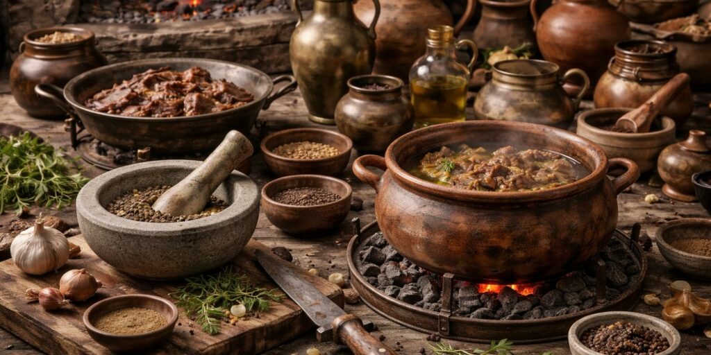 La cuisson lente était très répandue chez les Romains. Elle permettait de rendre les aliments plus tendres et de développer les saveurs. Les plats mijotés étaient souvent préparés dans des pots en terre cuite. Cette méthode convenait parfaitement aux ragoûts.