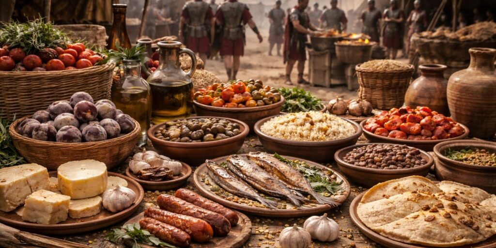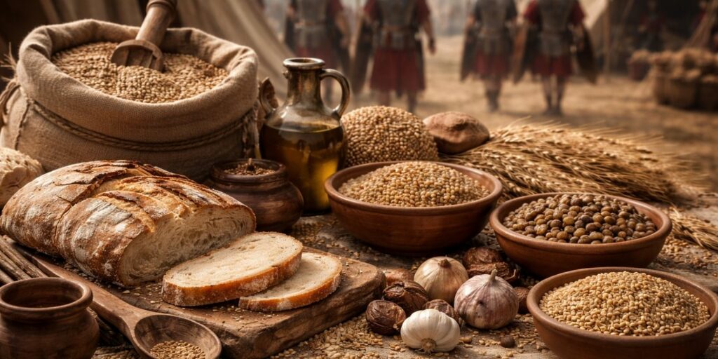 Avant d’aborder les détails, il faut comprendre que l’alimentation des soldats romains reposait sur des produits simples, nourrissants et faciles à transporter. Le blé dominait largement les rations quotidiennes, mais il n’était pas le seul élément essentiel. Pain, bouillies et légumineuses formaient un trio énergétique indispensable. Découvrons comment ces aliments structuraient leurs repas au quotidien.