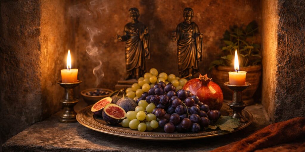 Offrir des fruits lors de cérémonies ou les déposer sur les autels était une pratique courante. Cela montrait le lien entre nature, fertilité et prospérité divine.