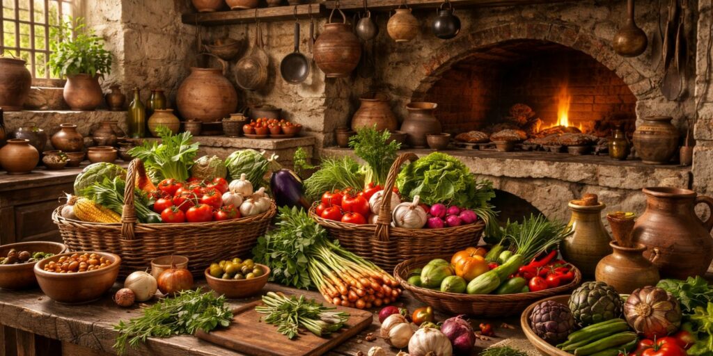 Cette absence influençait profondément les recettes antiques. Les sauces et plats reposaient sur d’autres ingrédients. Les légumes locaux structuraient toute la cuisine.