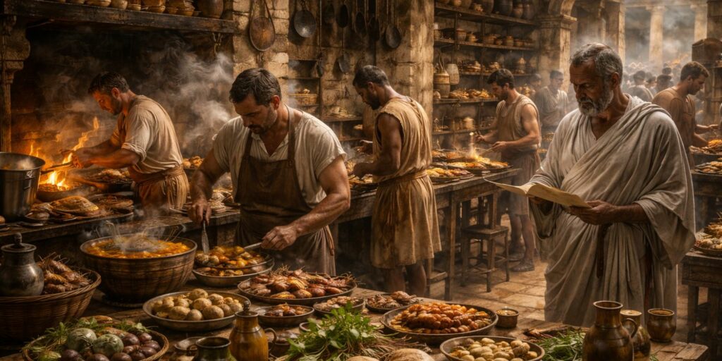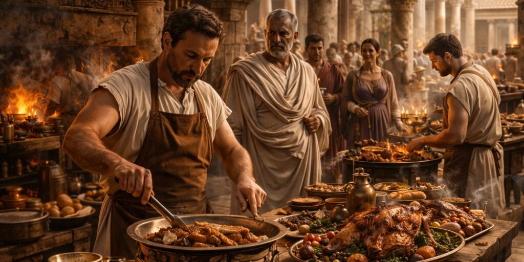 La Rome antique ne se limitait pas à une cuisine domestique. Il existait également de véritables professionnels de la gastronomie. Leur rôle était essentiel lors des événements et dans les maisons riches. Découvrons comment ces cuisiniers s’intégraient dans la société romaine.